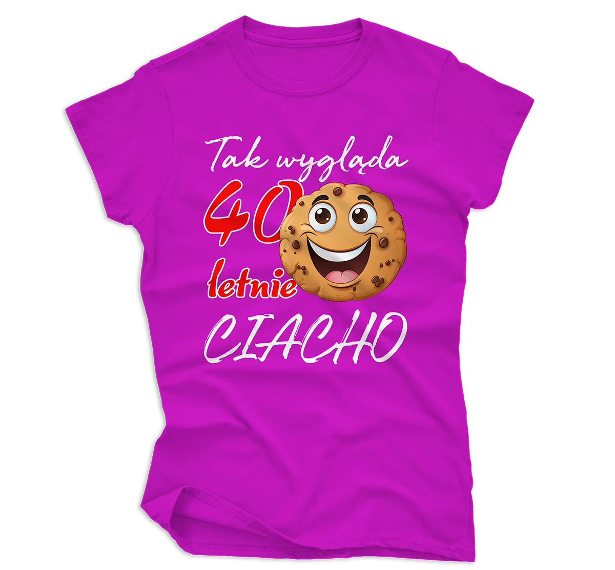 Ta damska koszulka urodzinowa z wyrazistym nadrukiem sprawdzi się idealnie podczas imprezy urodzinowej, spotkania z przyjaciółkami czy jako pamiątka z jubileuszu. Napis „Tak wygląda 40-letnie ciacho” to lekki, zabawny przekaz, który pokazuje, że wiek to tylko liczba, a kobiecość i styl pozostają niezmienne.